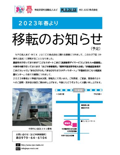 「多機能型事業所 こまどカレッジ」として、大分県中津市上宮永395番地に移転します。